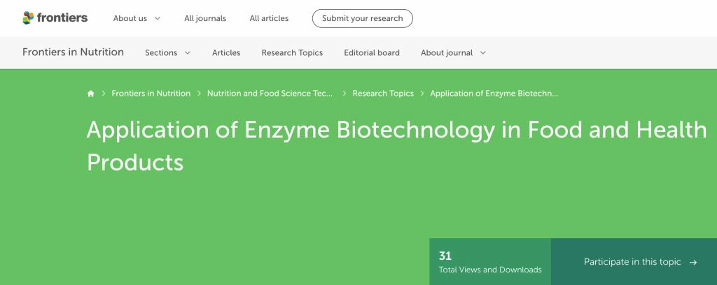 投稿链接:https://www.frontiersin.org/research-topics/65991/application-of-enzyme-biotechnology-in-food-and-health-products